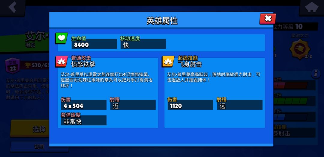 艾尔·普里莫(俗称“拳王”、“胖子”)是《荒野乱斗》中的稀有品质英雄,在新手阶段很容易解锁,而且拥有全游戏第二高的生命值,但射程却是全游戏最短的。极高的生命值赋予了拳王很好的生存能力,但最短的射程又很大程度上限制了拳王的伤害输出。
