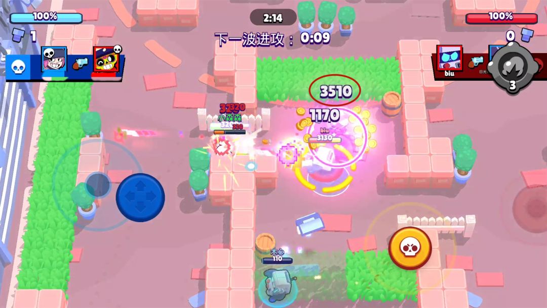 潘妮的普攻在单挑时表现平平,不过在团战时对付扎堆的敌人效果卓越,因此在宝石、赏金、足球、金库、机甲攻坚战、热区争夺等绝大部分团战模式中都有不错的表现。