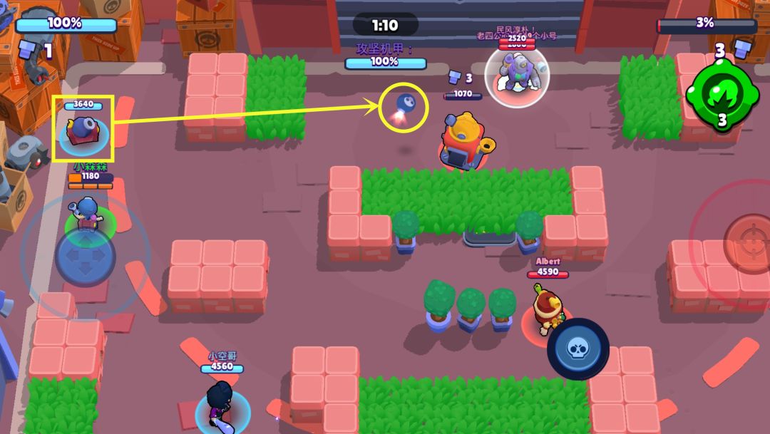 尤其是在机甲攻坚战中,潘妮的炮台攻击距离很远,放置在敌方基地的虚线外侧就可以直接对敌方基地发起进攻,特别适合用来偷家蹭血。