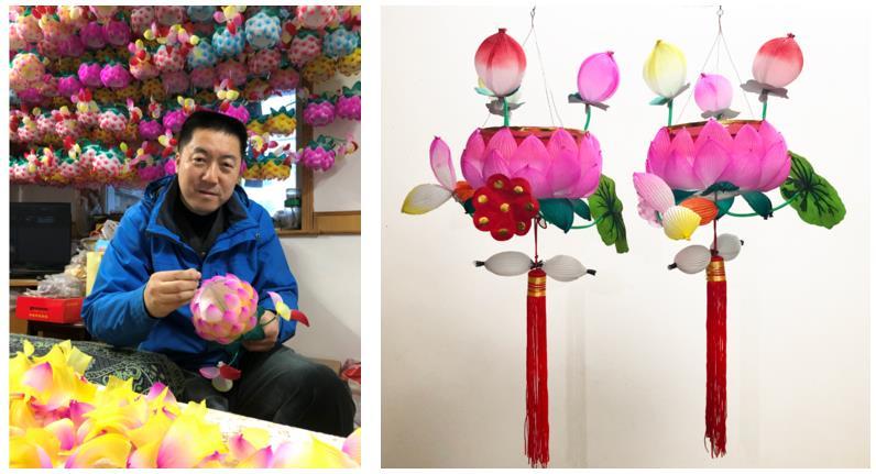 ▲ 秦淮灯彩非遗传承人郑峰及其作品