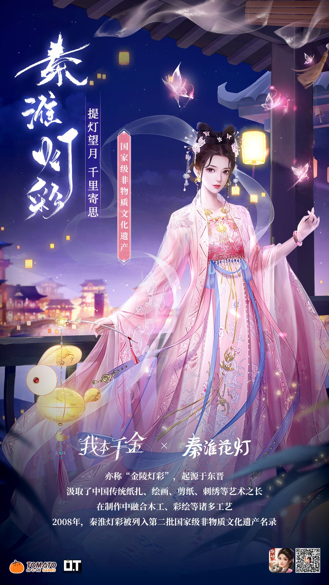 继非遗蜀绣、绳结跨界合作后,《我本千金》将加强非遗文化在游戏内的互动体验。除了与郑峰合作推出月兔花灯实物周边,还将秦淮灯会和月兔花灯植入游戏内,让三小姐们沉浸式体验与蓝颜提灯赏月、同游秦淮灯会的甜蜜浪漫。