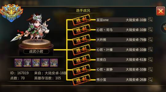 在挑战的时候,因为三局两胜的原因,一定要用田忌赛马的想法,用一队打地方二队,二队打三队的策略。但是战力有时候并不一定决定一切,在阵容差距,战力差距不大的情况下,那么巧妙的运用左上角的天气吧,毕竟加成的天气会打出更高的伤害,就像小编曾经就是依靠风沙天的气候,成功让伤害不够的马超秒杀了敌方诸葛翻盘呢!至于奖励,目前军备处的典韦,周泰,孙尚香,都是上上之选,尽量都搞到手吧,巅峰的碎片,如果没有武将,那么可以存着,毕竟获得整卡变成的30魂,让人看到会有想哭的感觉呢!游戏简介雷鸣三国安卓版是一款三国题材的角色扮演手游,游戏以古代三国时期为背景。延续了三国经典,游戏中,玩家扮演三国时期的一方诸侯,招募各路武将谋士,打造属于自己的武将阵容。独创技能连击系统,颠覆传统动作卡牌类游戏的玩法,不同技能根据释放的时机的不同可产生不同的效果,为战斗带来了无数的可能,达到了同类游戏中前所未有的策略感!
