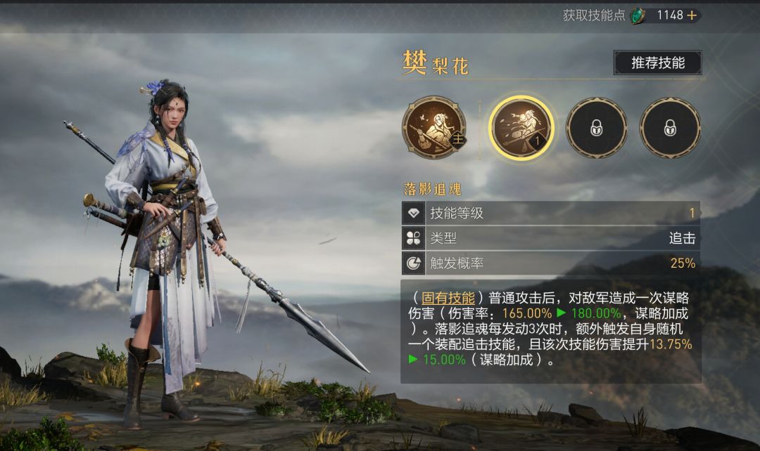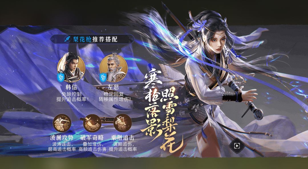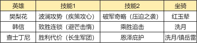 致胜连锁可以进一步提升樊梨花固有追击概率、破军的伤害,乘胜追击的作用也是提升樊梨花固有追击概率。