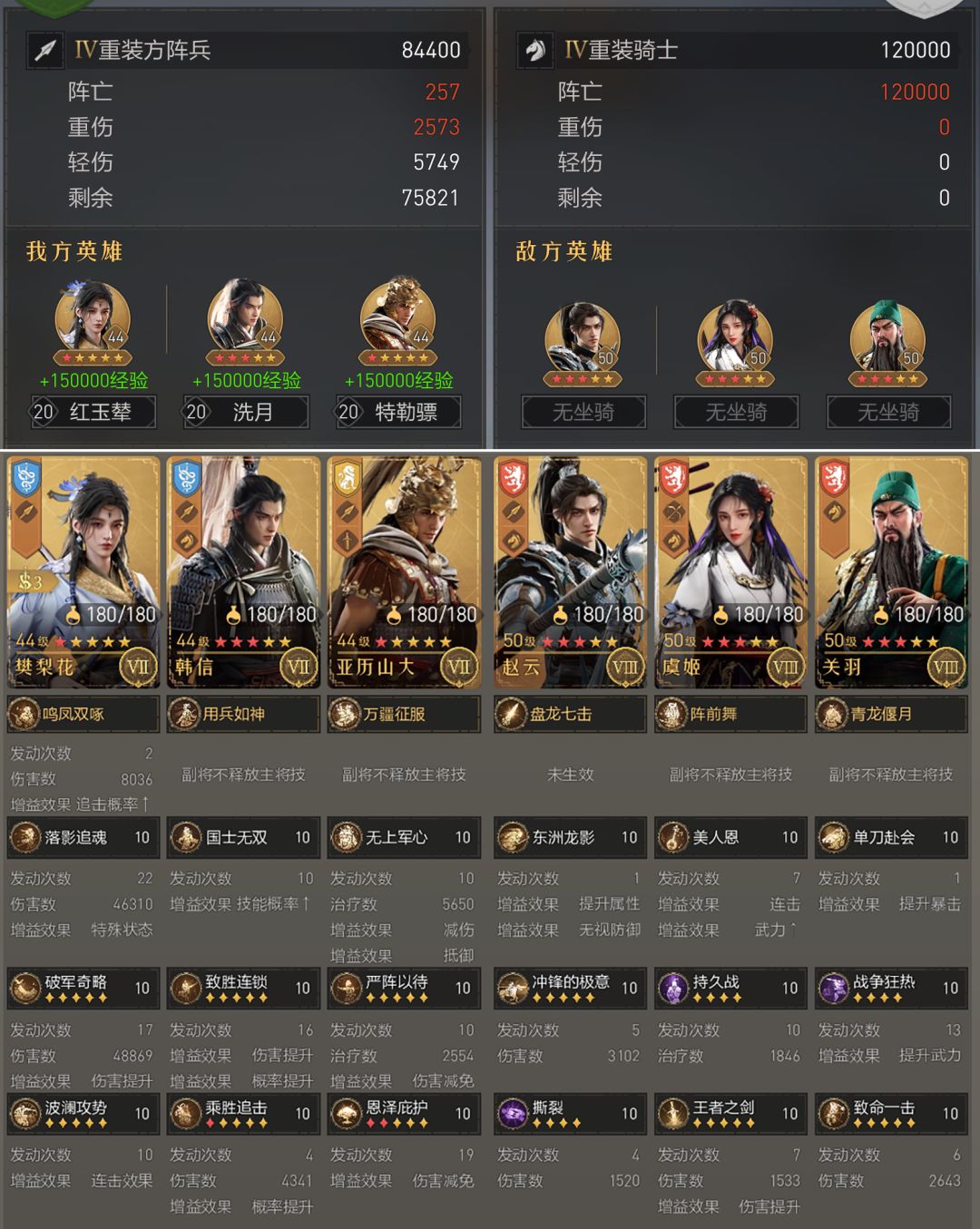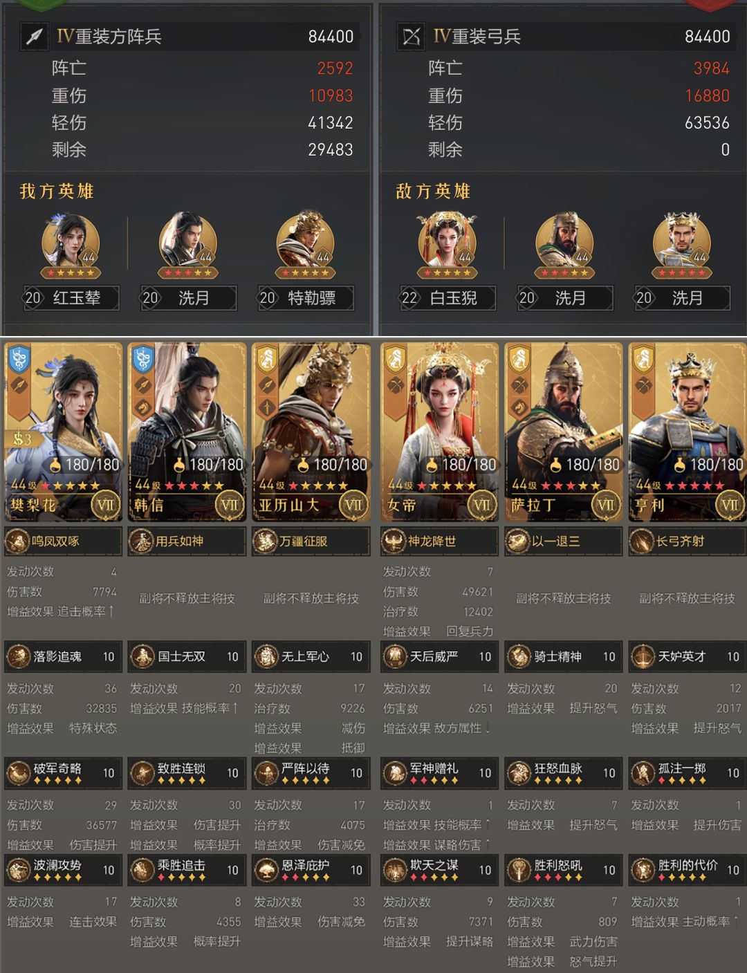樊梨花+汉尼拔+亚历山大的双核组合我也尝试过,但总强度还是不如上韩信多给樊梨花点概率划算,在樊梨花面前,汉尼拔真有点不够看,不是很推荐。