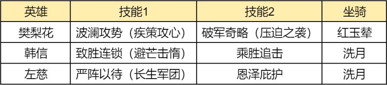 这套阵容也可以樊梨花转骑,玩新法骑,技能带法都一样,看你需要什么兵种了