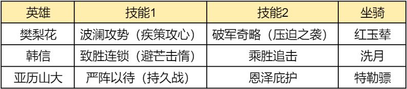 有亚历山大就选用樊梨花+韩信+亚历山大的组合,强度最高;