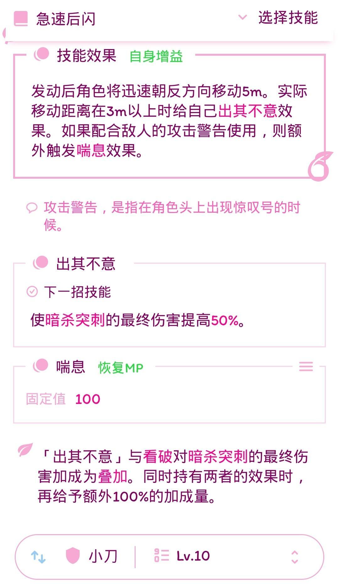 10级/1级急速后闪,十级相当于0耗,或者一级单纯为了机制使用,强射在近身后会失去效果,需要靠这个技能来迅速的往后退,防止强射失效。