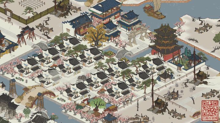 emm,不想居民区太拥挤。然后觉得居民区右下角一定要有个方便的集市买菜和钟楼喊大家起床😁,右上角是武则天私人大府邸,凉亭私人花园飞云楼一应俱全。过桥就是娱乐区,古人的娱乐可真少,心疼~