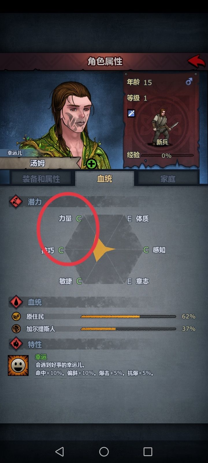到达了24级的汤姆技巧离轻骑兵的需求15还差俩点,但是他敏捷很高!