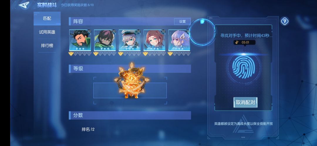 事实证明,就是匹配不到,上午匹配还遇到进不了场,直接判定我输的情况