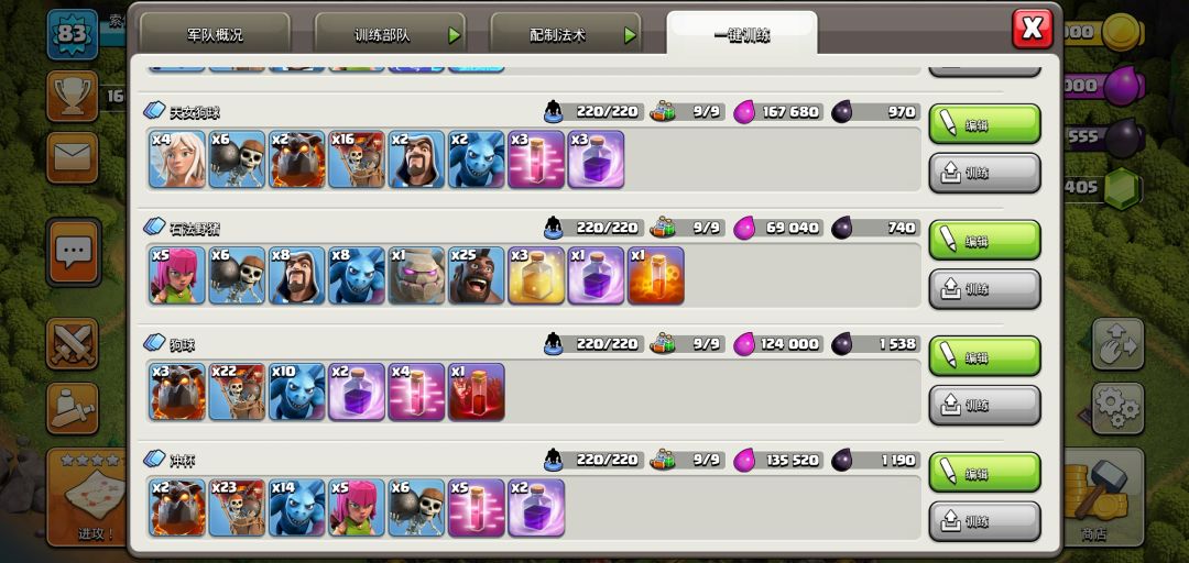 首先是配兵,最下面的就是冲杯打十本稳一争二的狗球配兵,援兵用六级以上气球就可以 法术冰冻