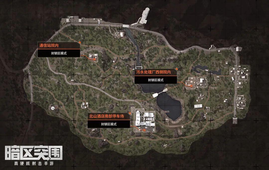 北山:普通模式的北山地图没有空投罐,封锁区模式中则有三个,分别位于通信站院内、北山酒店南部停车场以及污水处理厂西侧院内。