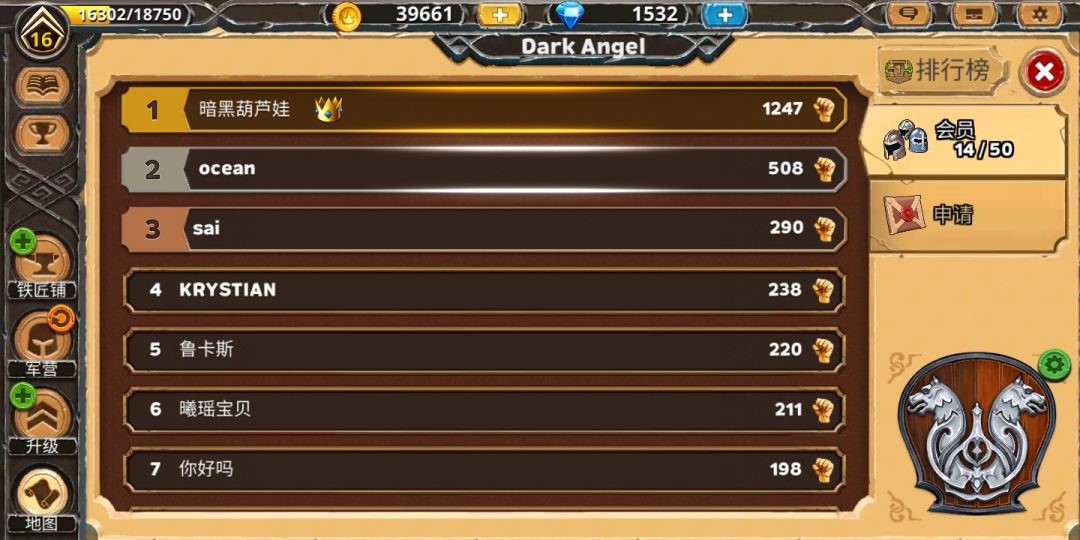 如图,目前玩了一个月左右,公会已经有了一定数量的活跃玩家,欢迎新人加入。这游戏金币攒得慢花得快,每天左右两座要塞刷个十多二十波也就大约四万左右的金币,金币商店里的经验药水只买13000两瓶装的,有二十万经验
