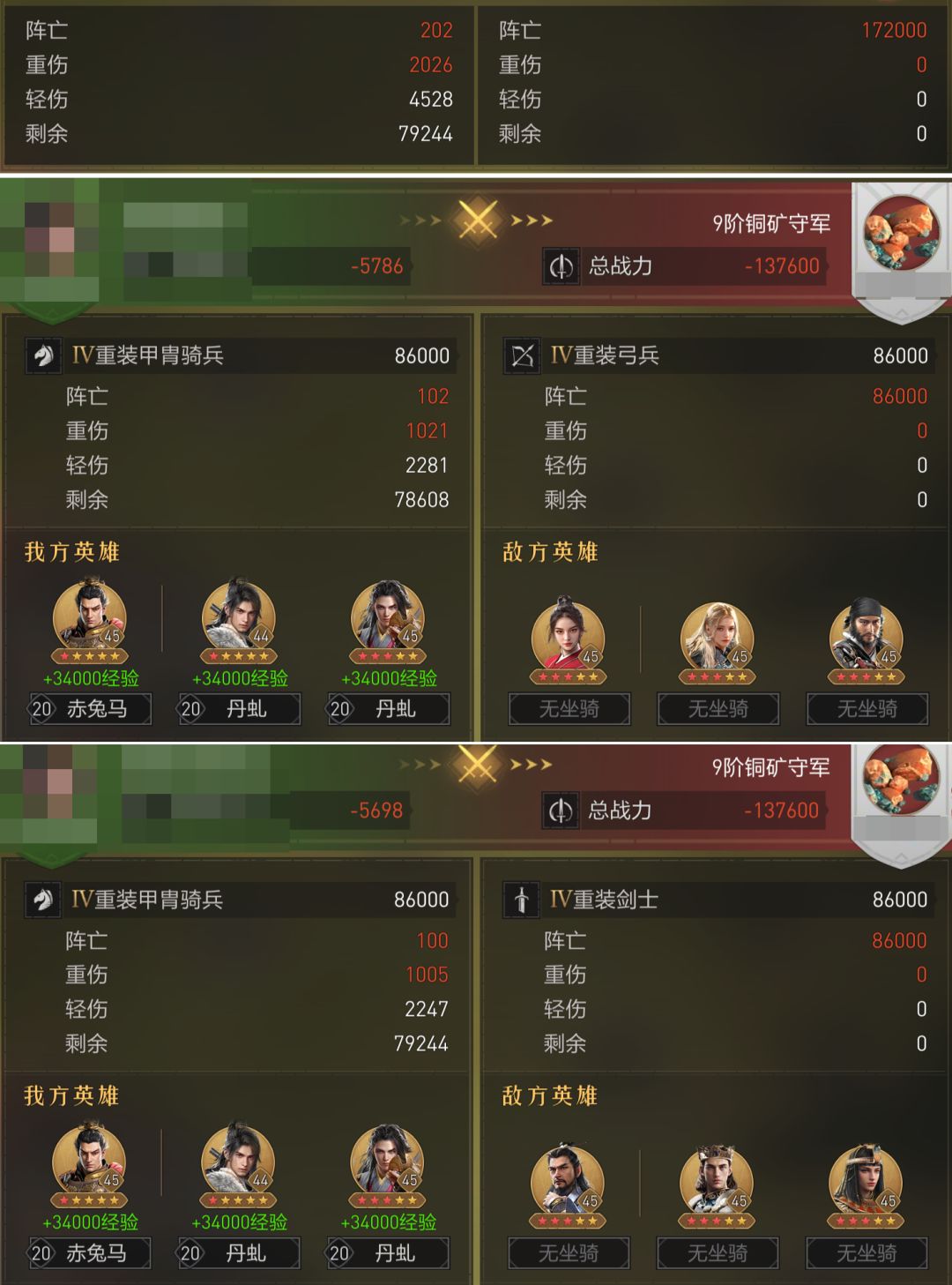 战斗用时和无双骑一样,都只用了28秒,但由于该阵容没有回复能力,所以战损高一些,个人建议还是红度更高一些再考虑这个阵容。