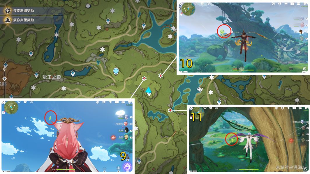 注:9-11处需要在梦境里获取,梦境中桓那兰那地图偏紫,若不在梦境里就来到此处用老旧的诗琴弹奏乐曲