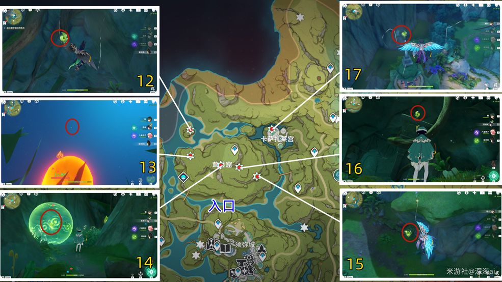 13.洞窟门口,可以直接获取14.需要先清除死域,再用草元素激活藤蔓石视频陪跑