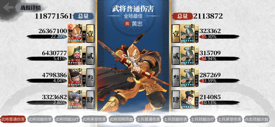 黄忠普伤+技能伤害 元戎普伤+技伤 合计