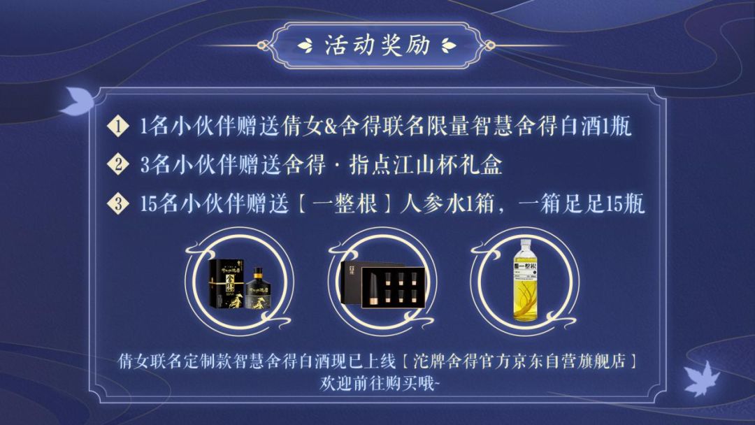1名小伙伴将获得倩女&舍得联名限量智慧舍得白酒1瓶