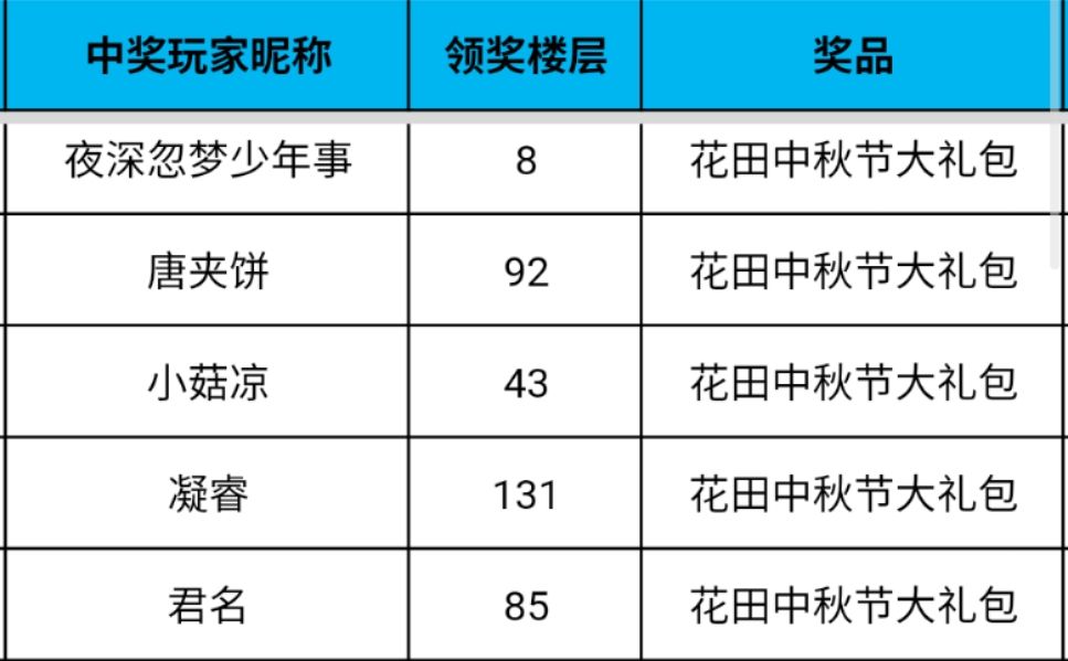 我们将在2222.09.11当天上午在本帖以更新的形式公布名单在随机抽取符合条件的5名玩家奖励!如玩家(游戏ID)多次参与则计算一个名额,仅可获得一次奖励;活动结束后,我们会私聊获奖玩家通知官方联系方式,若逾期未兑奖(10天内)视为放弃本次活动奖励,后续不再补发。