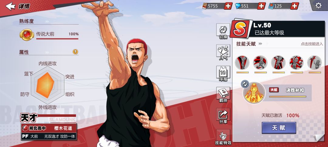 缺点:打的好的流川枫,打不好的流川疯,毒,地板球弱势,没有盖帽技能,比较考验冒点。