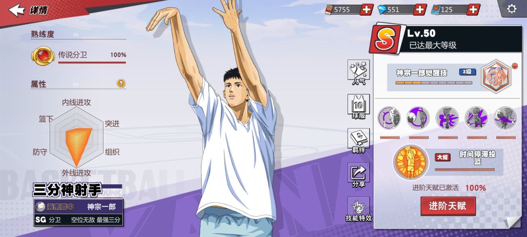 潜能:这里推荐三分能量获取套,因为进阶之后可以在三分线外漂移了。