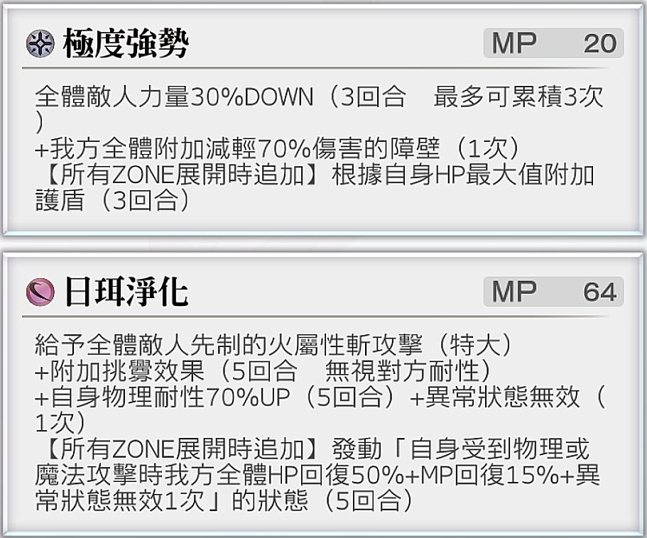 效果:消耗一个神盾,先制给予自身守护(效果至回合结束时) 消耗MP 0