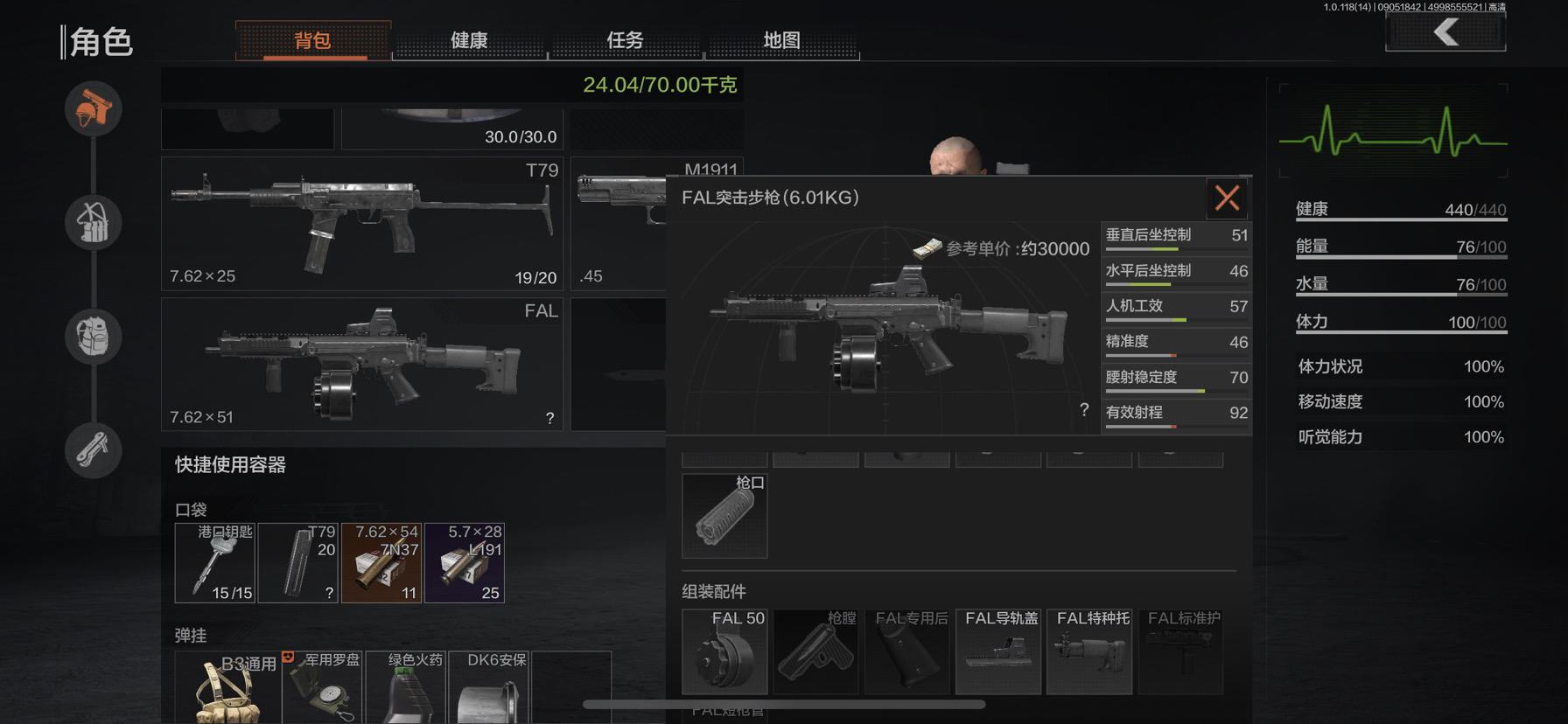 伪装检查站别人收过的地方捡垃圾,捡到一把半改fal,稍微搜下,肥肥撤离,还好没被噶,不然晚上又睡不着了.
