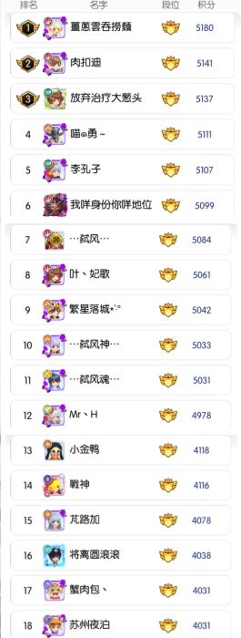 组队竞技赛 ▎第17赛季排名列表(一区前200名)