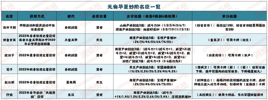 接下来逐个分析各个妙级名臣的获得方式
