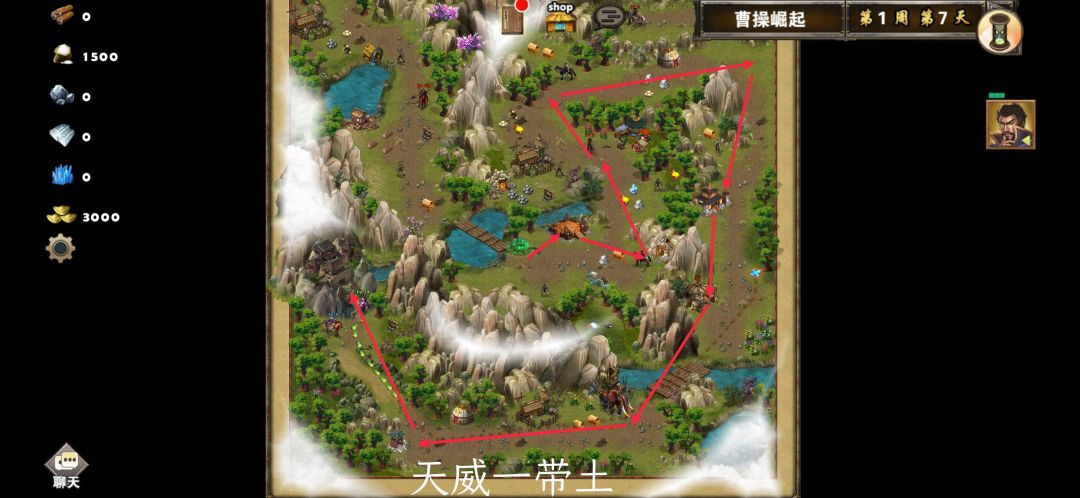 打法思路:开局和陈宫对话陈宫加入队伍,然后顺着路一直跑到底进城等吕布来攻就可以了。把路上的资源,矿和兵都收集了尤其是乌龟打吕布的时候可以轮流冰冻他难度降低大半。