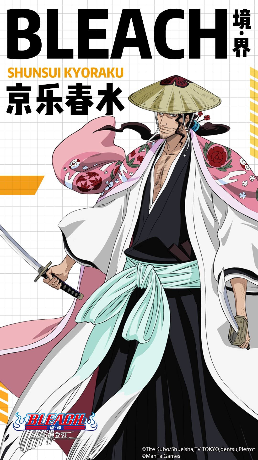 全新角色登场京乐春水八番队队长,言行轻浮不喜战斗,乍一看没有一点队长的风范,但其实心思周密并且擅长看破真伪,非常受山本总队长信赖。左右手都擅使长刀和短刀,虽为队长,外表上看似举止轻浮,实际上是个心思缜密、高情商、实力深不可测、拥有相当程度的洞察力,一旦战斗时便展露超群绝伦的力量。