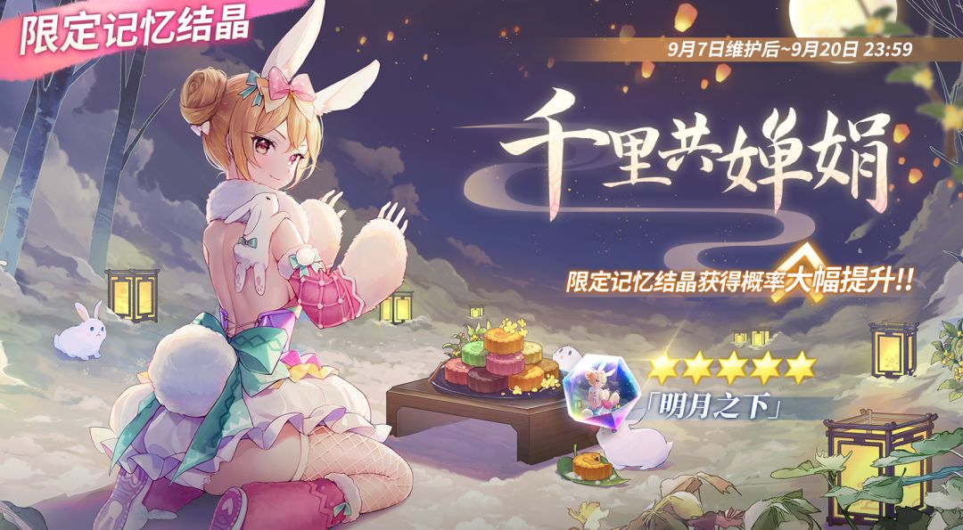 「千里共婵娟」限定记忆结晶活动祈愿即将开启!活动期间内,限定5★记忆结晶「明月之下」的祈愿获取概率会大幅提高!