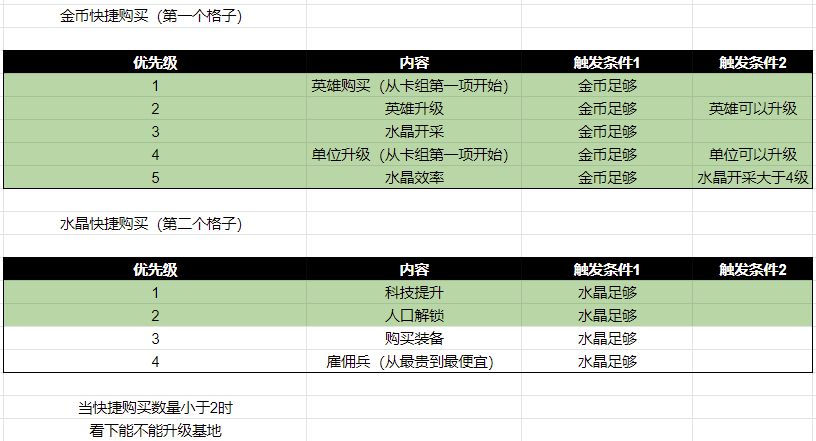 目前标绿的是已经实现的快捷购买。装备,雇佣兵,基地升级会在明天更新。
