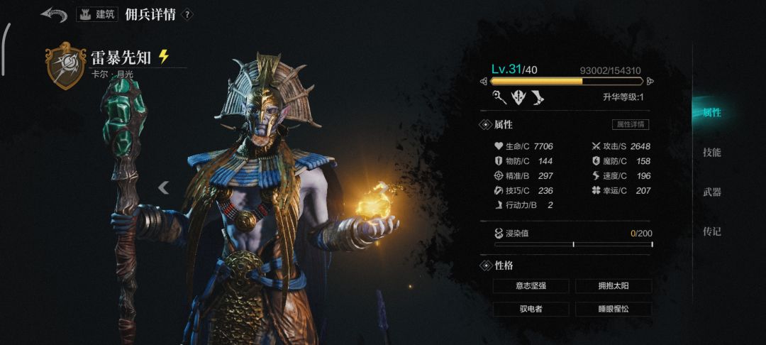 代表人物:伯劳,本游颜值天花板,就冲着养眼度我就打100昏!单体输出最高,但本测物防都偏高,就有些打不动人,神选印记比较好用,30级武器有神技狙目