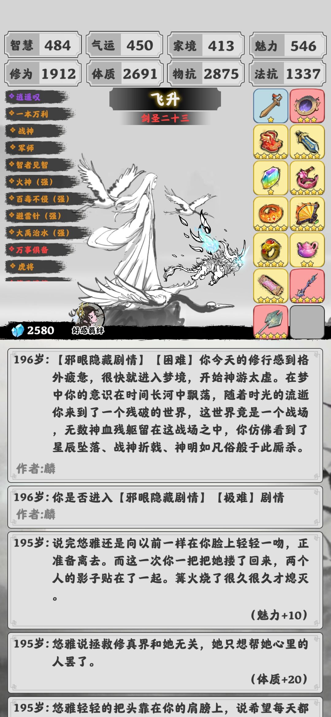 装备加点优先级自己看着加,修为可以慢点加,但是钱是不能少的6