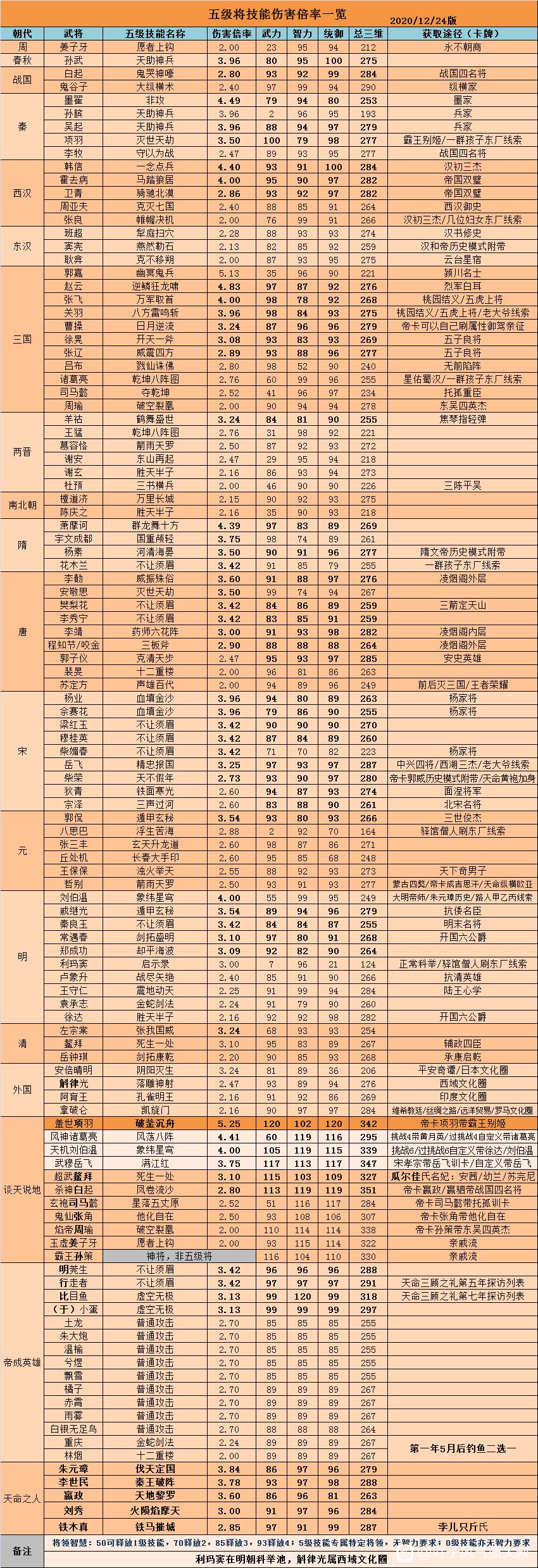 五级将技能伤害倍率一览
