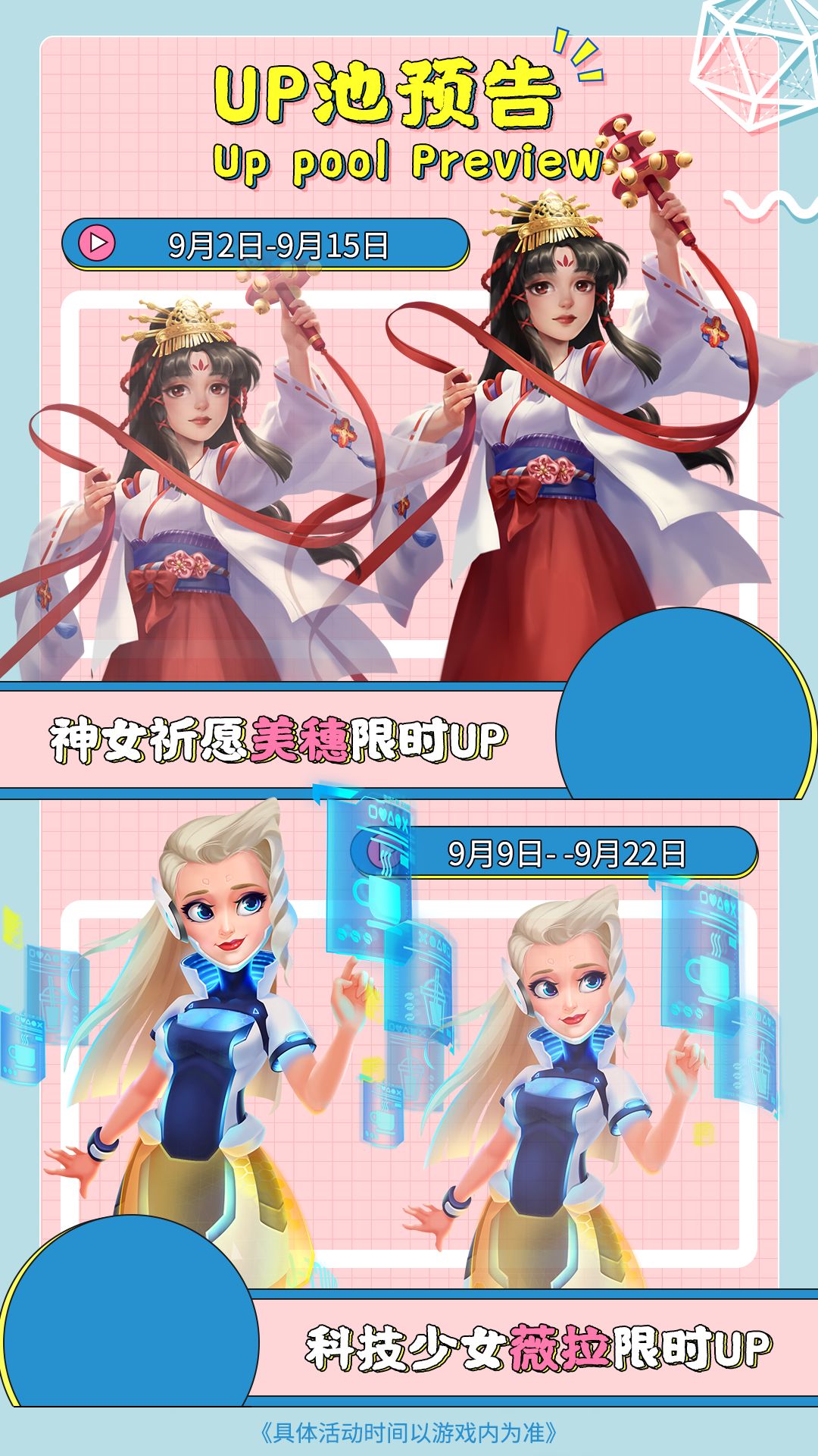 活动期间,扭蛋机中金色员工「美穗」「薇拉」出现概率限时提升!