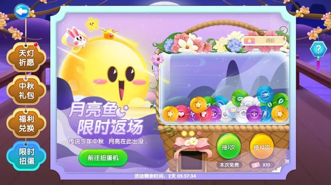 传说今年中秋,月亮在此出没~原来月亮鱼已经偷偷躲进了扭蛋机中,扭蛋机限时上架月亮鱼,抽中的概率也将大大提升,馆长们快前往扭蛋收集呀~