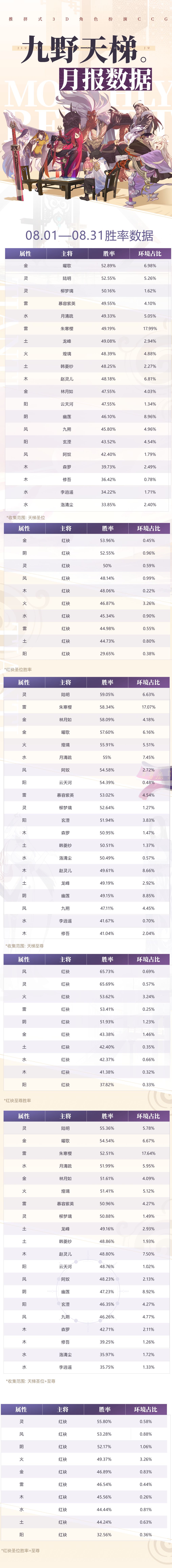₪天梯八月月报₪胜率表来啦~
