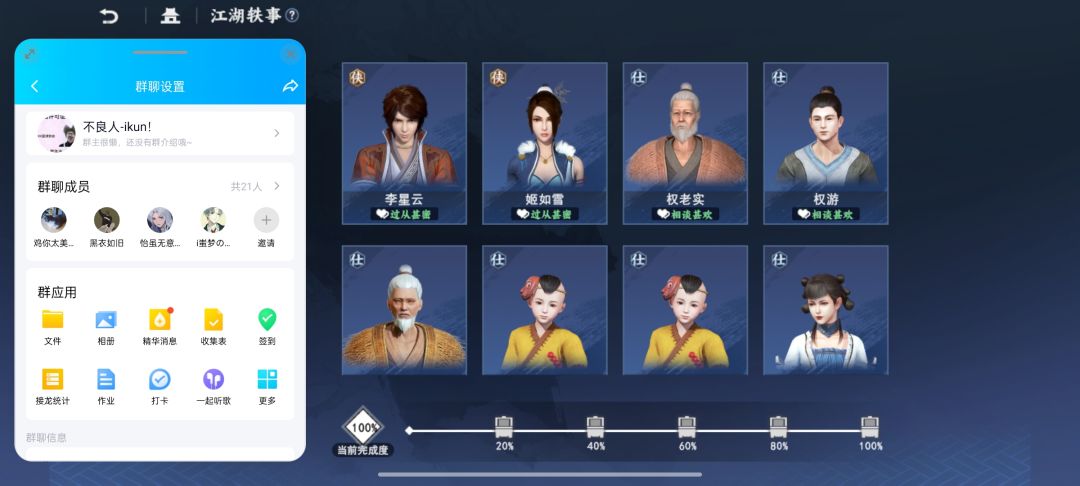 大家的侠客轶事除了主力侠客的侠缘值(就是给贡献物品)基本都是相谈甚欢