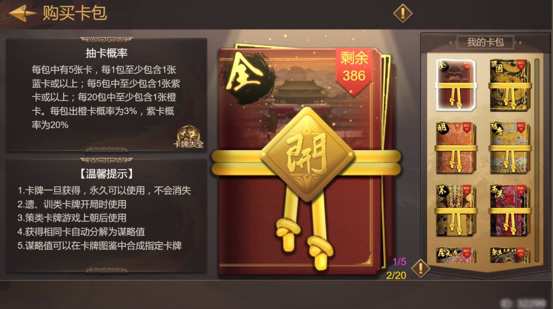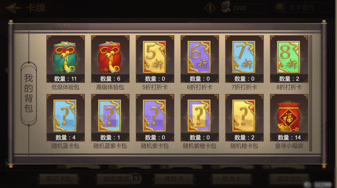 ◆遗诏界面各项入口以及兑换卡包界面更新