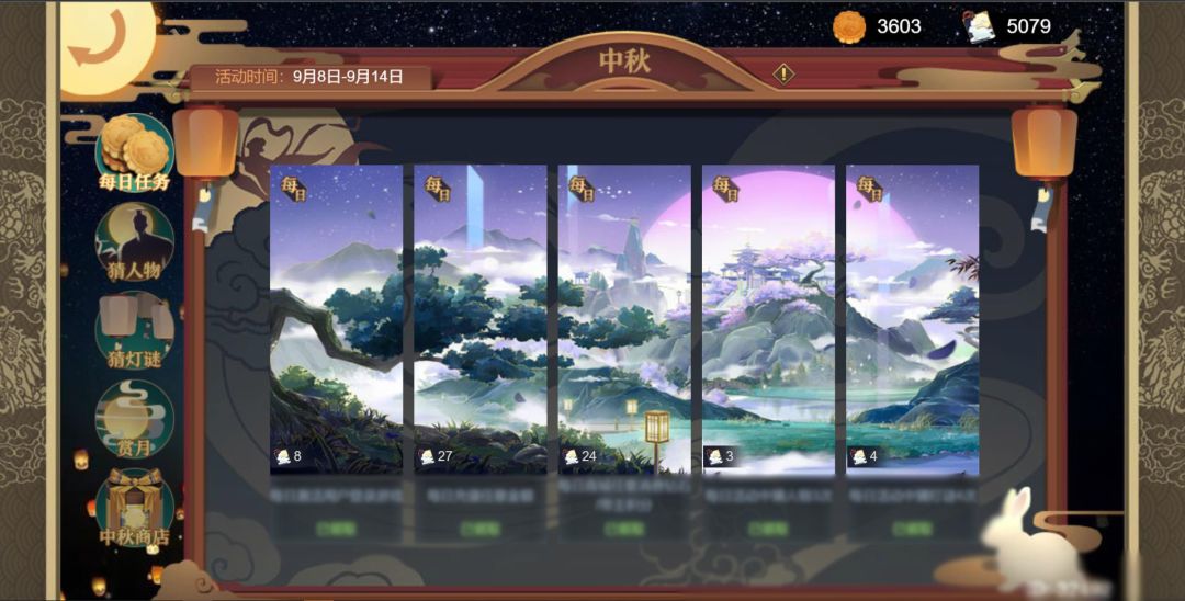 ◆激活用户参与中秋活动,完成每日任务和活动玩法,领取若干月饼(活动代币)