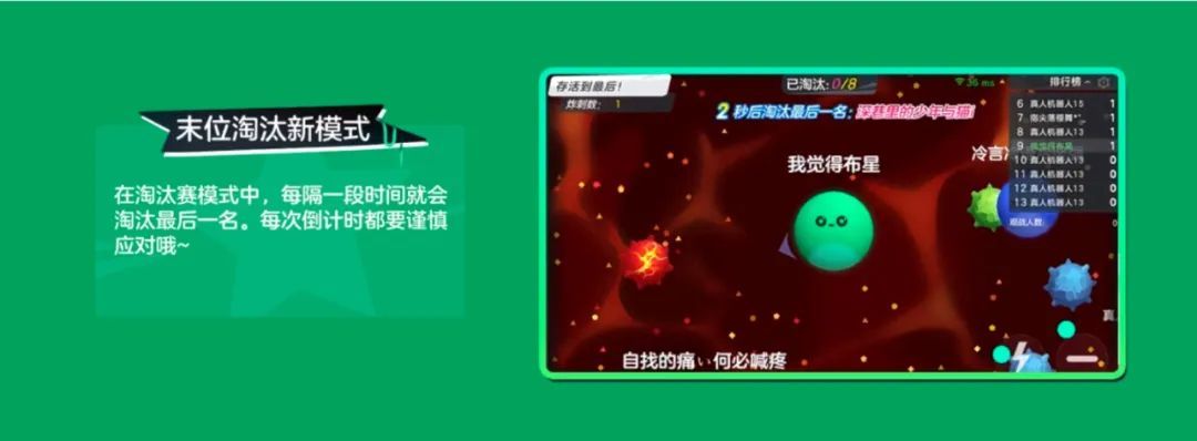 单人终极淘汰赛新增末位淘汰模式,在比赛开始后,每隔一段时间就会将排名倒数第一的球宝淘汰。