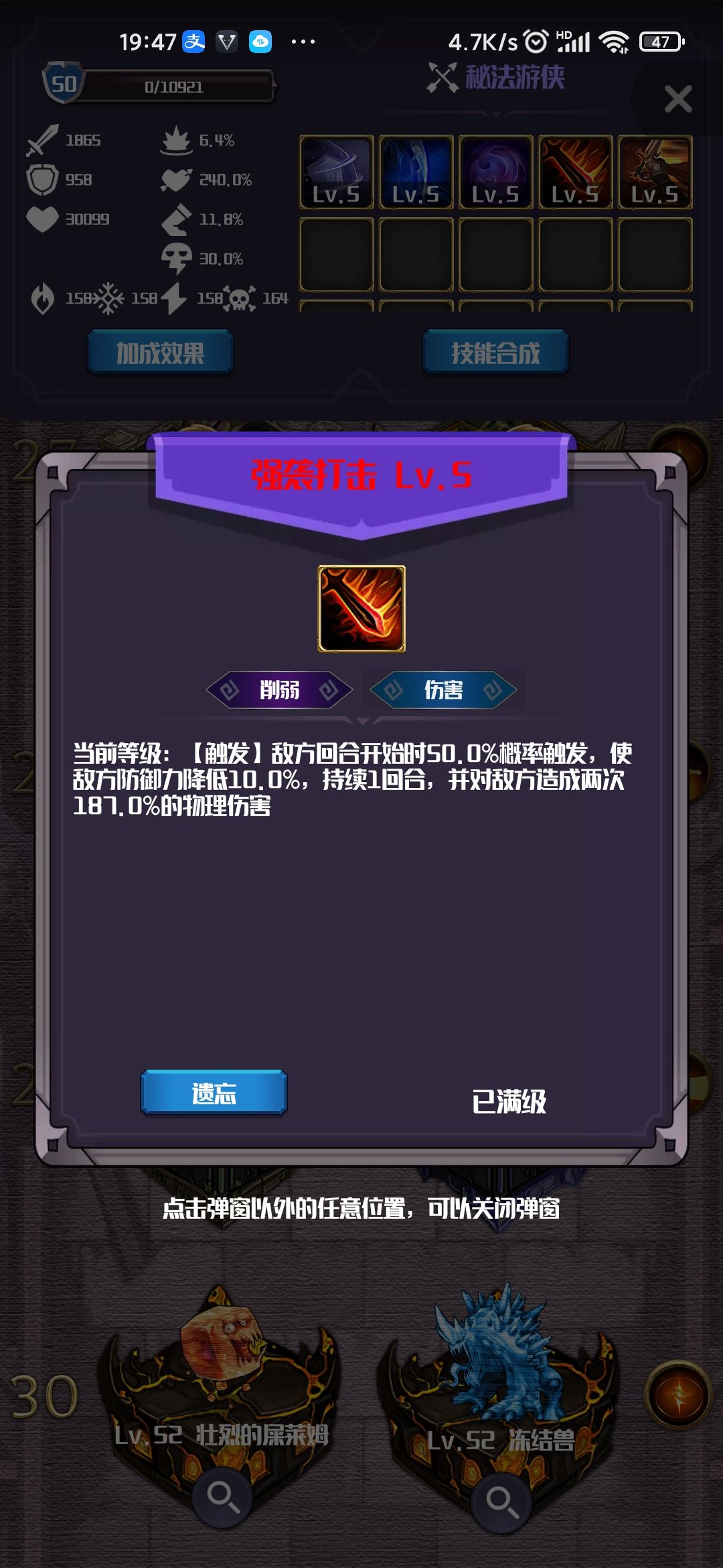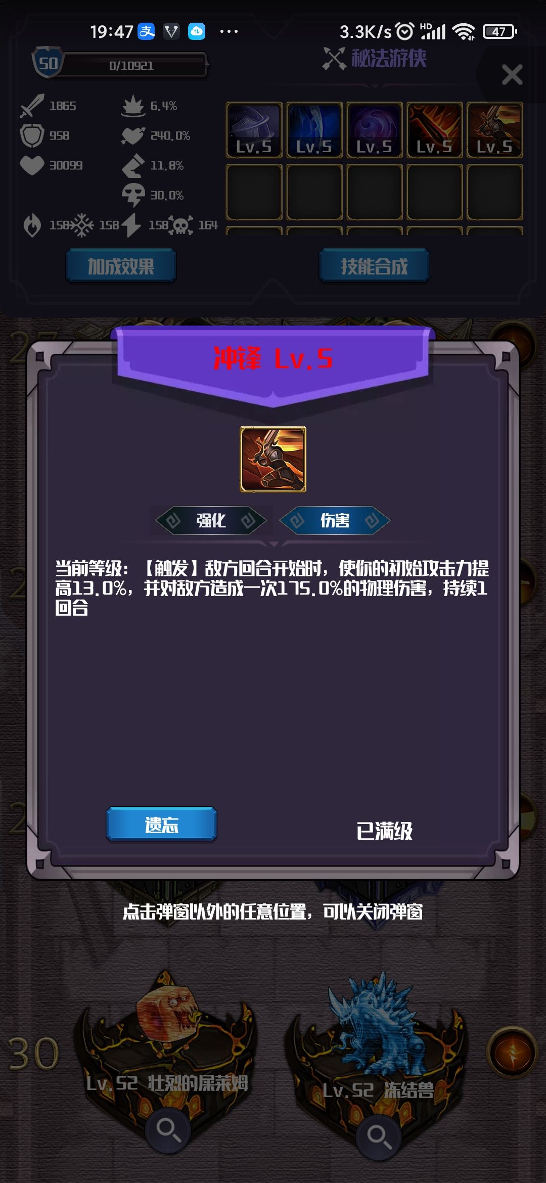 这就意味着,敌人的强袭冲锋只能用一次,然后就要等待几个回合的cd。这期间石磨护符足够保命。