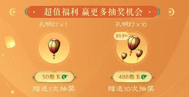Tips:各位旅者还可以使用脂玉购买同心灯,来获得更多抽奖机会,一次性购买十只还有特别优惠呢!