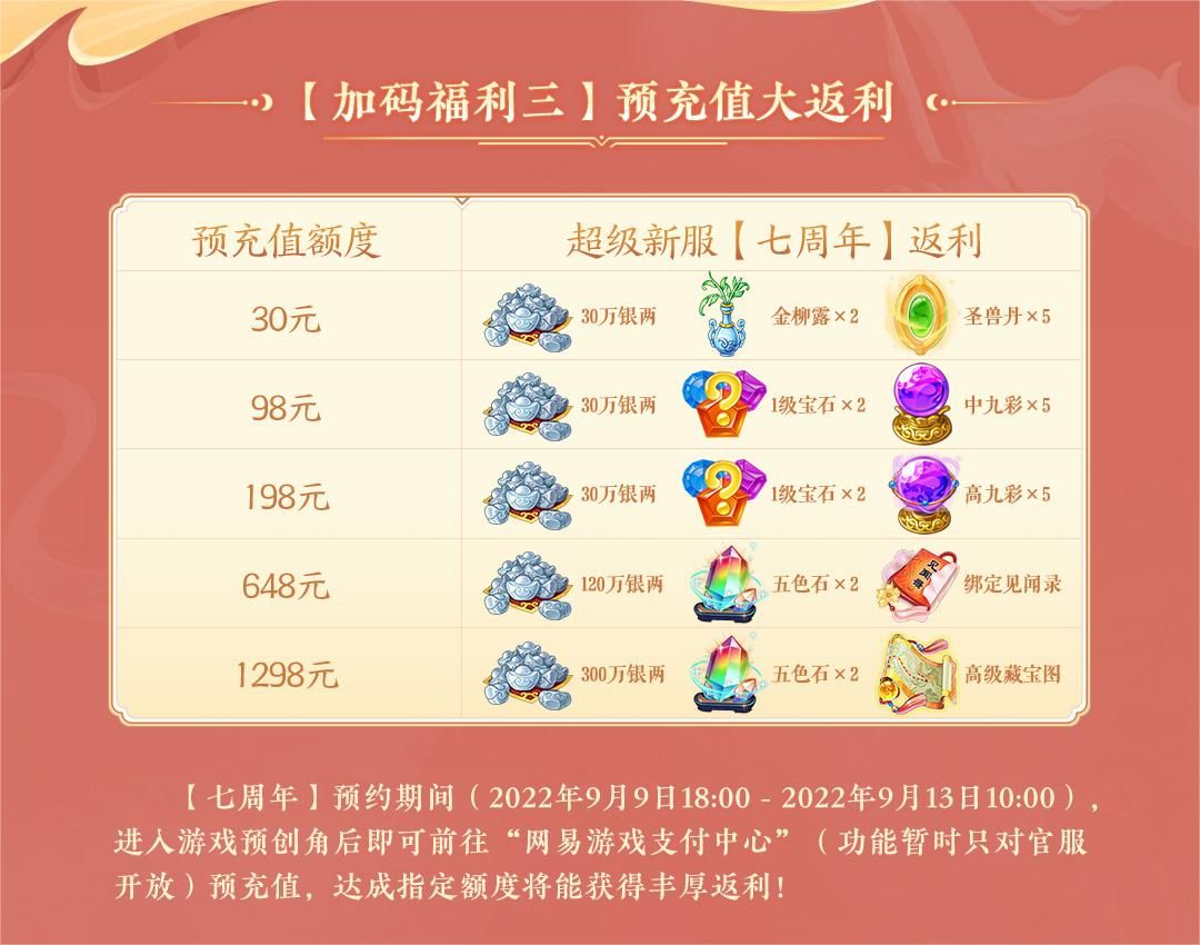 9月8日维护后,将迎来周年庆经济系统福利,而【七周年】将成为首个享受福利的服务器!