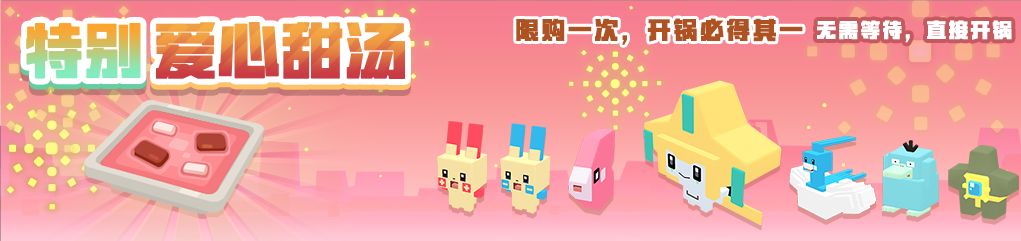 特殊料理“特别爱心甜汤”将在8月4日上架友好商店,活动期间每位探险家限购一次,该料理无需等待,购买后直接开锅吸引宝可梦来到营地,并且必定吸引一只稀有宝可梦(异色海星星、异色可达鸭、正电拍拍、负电拍拍、爱心鱼、青棉鸟、幻之宝可梦基拉祈)!