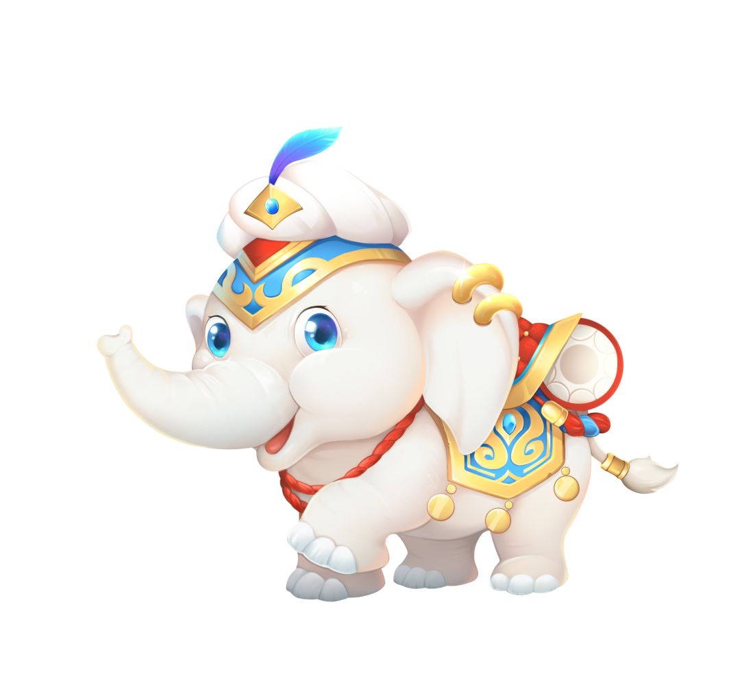 我们的大象坐骑有着雪白的皮毛,清澈透亮的大眼睛,还有那粉嫩嫩的耳朵上,有金色耳环轻轻摆动,搭配上尾部红色喜庆的长鼓,虽然很大只但是却透露着软萌的气息