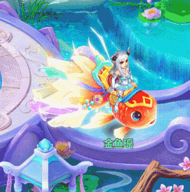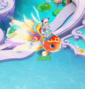 咱们的金鱼坐骑,外观相较于一般的金鱼来说更加美轮美奂,最惹人注目的当属它的七彩尾巴就像是水里的波纹一样,轻轻摆动着还散发出耀眼的光芒,简直就长在了瑶瑶的审美上