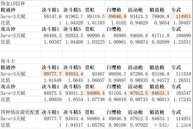 另外补充和璞鸢也是角斗士攻击沙伤害最高,5a+e+天赋总伤约102647,在最后一行的比值为1.143,和专武差距约12%